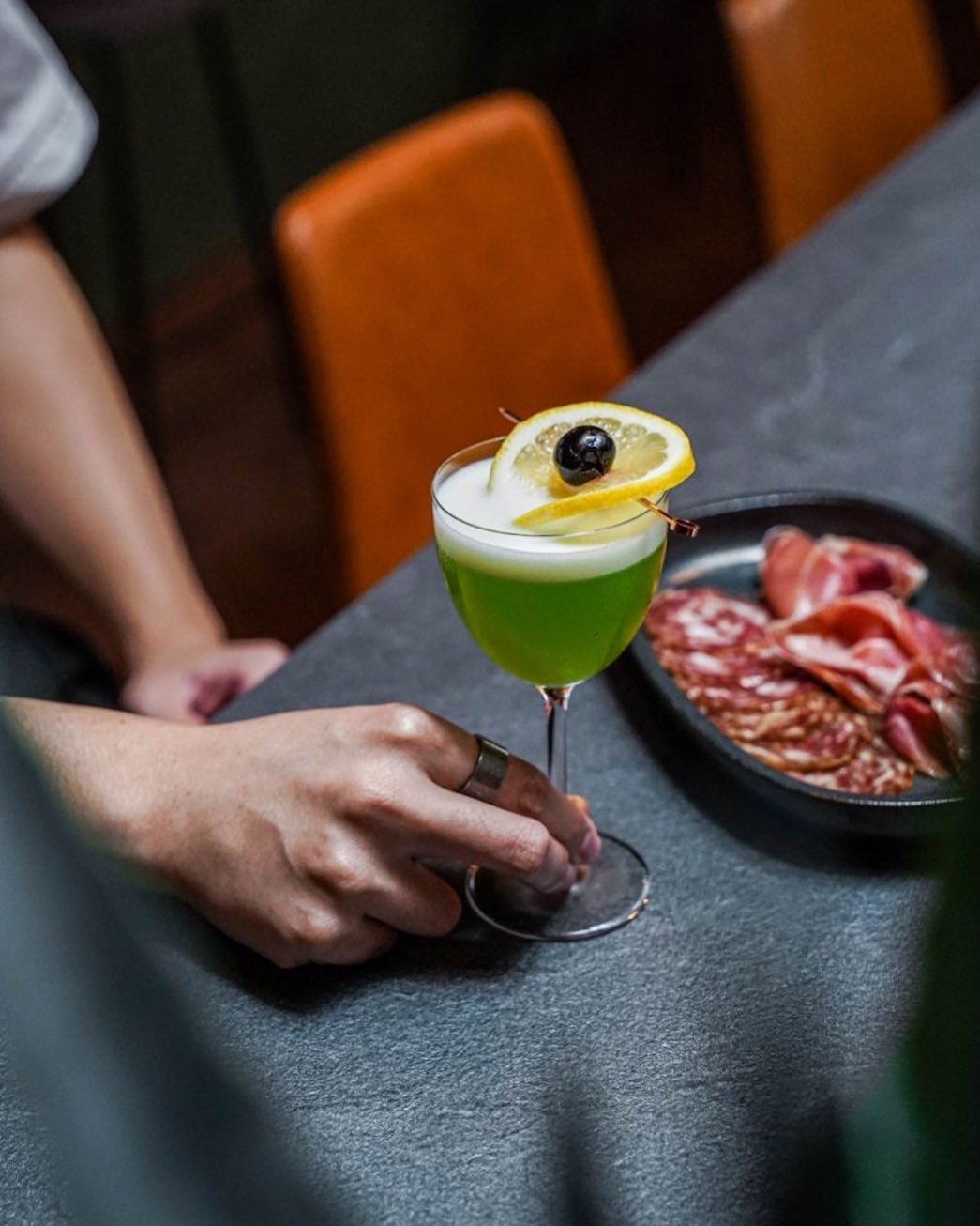 Next time you’re strolling along Neil Road and happen to spot a humble teal door, do yourself a favour and take a little peek inside. Beyond that unassuming entrance lies a cosy living room, complete with a comfortable sitting area. As you venture further in, you’ll see an intimate cocktail bar illuminated by a skylight.